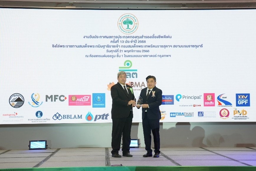 - รางวัลชนะเลิศ Single Fund กองทุนสำรองเลี้ยงชีพรัฐวิสาหกิจ ขนาดกองทุนเล็กกว่า 20,000 ล้านบาท