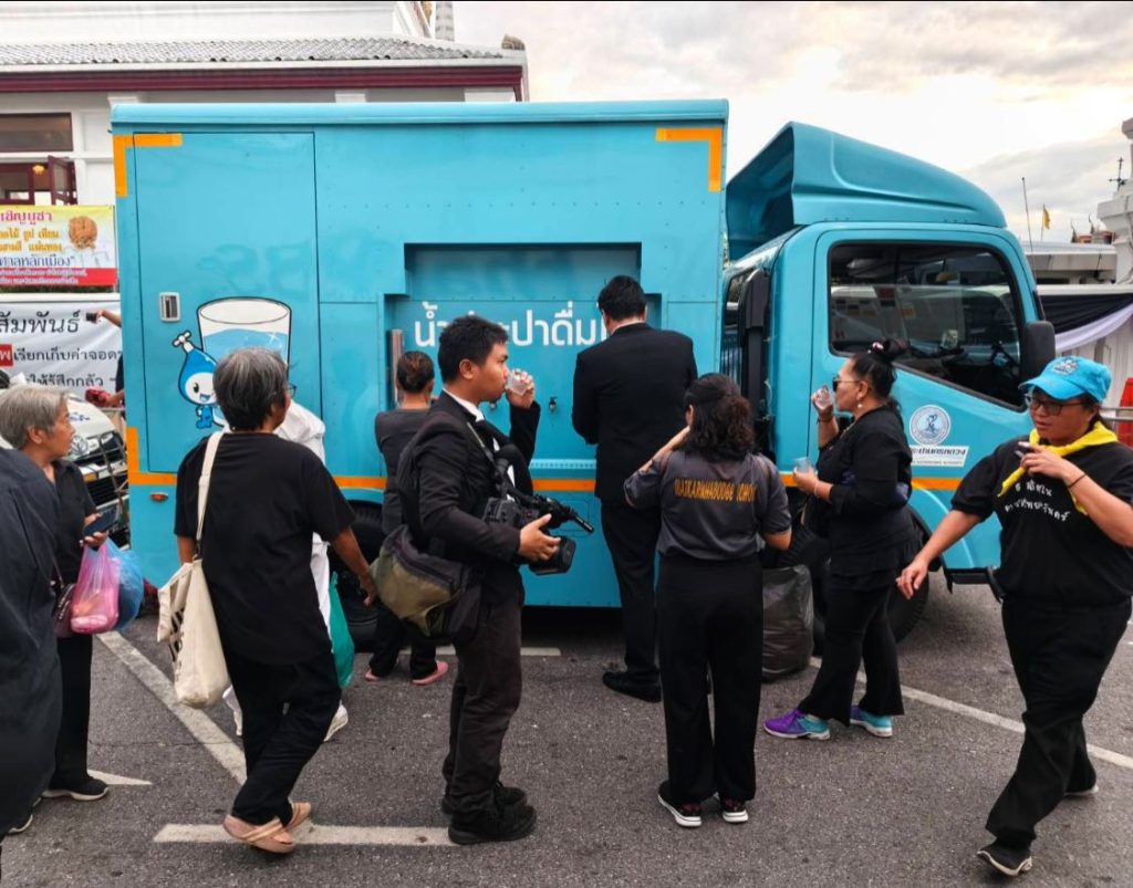 กปน. สนับสนุนรถน้ำดื่มเย็น บริการประชาชน ที่มาเฝ้ารอรับขบวนเคลื่อนพระบรมศพ สมเด็จพระนางเจ้าสิริกิติ์ พระบรมราชินีนาถ พระบรมราชชนนีพันปีหลวง