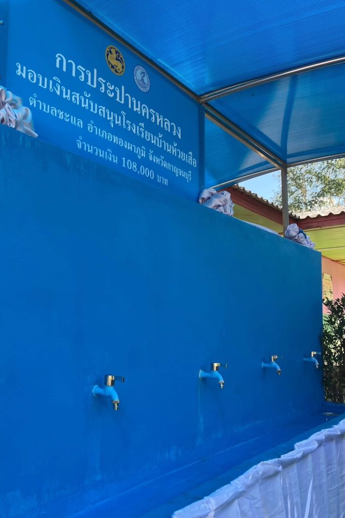 สำหรับการปรับปรุงระบบประปาโรงเรียนบ้านห้วยเสือ กปน. ได้สนับสนุนงบประมาณจำนวน 108,000 บาท พร้อมบุคลากรและจิตอาสาลงพื้นที่ดำเนินการระหว่างวันที่ 12–16 ธันวาคม 2568 เพื่อให้ครู นักเรียน และประชาชนในชุมชนใกล้เคียง มีน้ำดื่มน้ำใช้ที่สะอาด ปลอดภัย เพียงพอต่อการอุปโภคบริโภค และส่งเสริมสุขอนามัยที่ดียิ่งขึ้น นอกจากนี้ กปน. ยังได้มอบผ้าห่มกันหนาวจำนวน 1,000 ผืน ให้แก่ประชาชนในพื้นที่อำเภอทองผาภูมิ เพื่อบรรเทาความเดือดร้อนในช่วงฤดูหนาว และมอบอุปกรณ์การเรียนการสอน สำหรับครูและนักเรียนโรงเรียนบ้านห้วยเสือด้วย