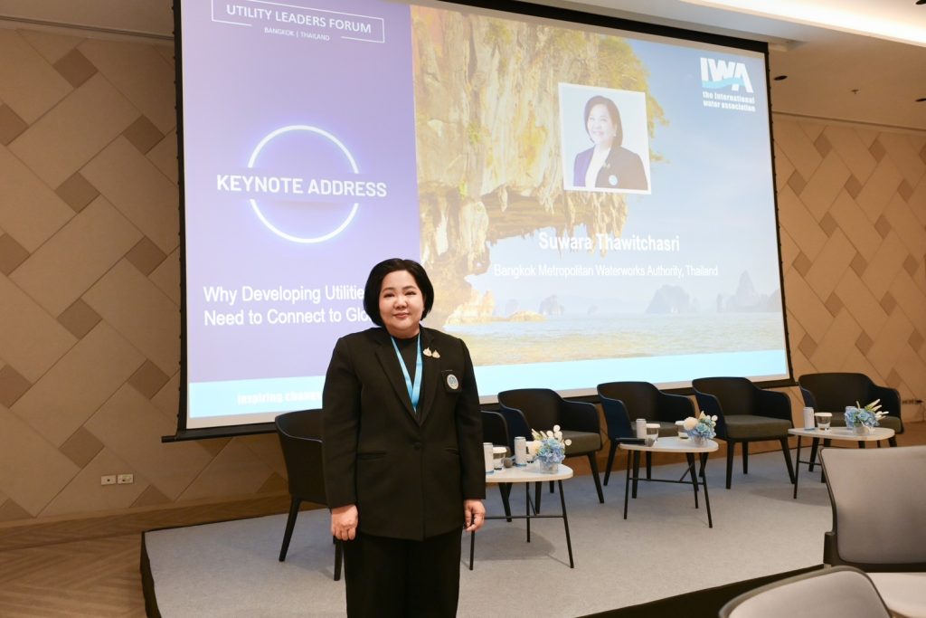 เมื่อวันที่ 10 ธันวาคม 2568 ณ ศูนย์การประชุมแห่งชาติสิริกิติ์ นางสาวสุวรา ทวิชศรี ผู้ว่าการการประปานครหลวง (กปน.) ร่วมปาฐกถาในหัวข้อ “Why Developing Utilities Need to Connect Globally” ในงานประชุมระดับโลก IWA Water & Development Congress & Exhibition 2025 (WDCE 2025) ตอกย้ำความสำคัญของการสร้างเครือข่ายพันธมิตรระหว่างประเทศ ยกระดับมาตรฐานการประปาไทย โดย กปน. นำแนวทางปฏิบัติที่เป็นเลิศ (Best Practices) จากองค์กรชั้นนำทั่วโลกมาประยุกต์ใช้ พร้อมพัฒนานวัตกรรมที่สร้างผลกระทบเชิงบวกอย่างเป็นรูปธรรม อาทิ 💧MWA Command Center (MCC) ศูนย์สั่งการติดตามแก้ไขปัญหาข้อร้องเรียนและวิกฤติน้ำแบบเรียลไทม์ 💧Anti-Salinity Tools (ANSAT) หรือ ‘รู้สู้เค็ม’ เครื่องมือบริหารจัดการปัญหาคุณภาพน้ำดิบในช่วงหน้าแล้ง 💧Chlorine Next ระบบเติมคลอรีนอัตโนมัติ และ 💧LEVEL UP PUMPING (LVP+) นวัตกรรมการปรับปรุงประสิทธิภาพของระบบการสูบจ่ายน้ำ พร้อมส่งต่อองค์ความรู้ด้านระบบประปา สร้างความเข้มแข็งให้กับหน่วยงานสาธารณูปโภคน้ำประปาของประเทศต่าง ๆ ในระดับภูมิภาคอย่างต่อเนื่อง เชื่อมโยงกับประชาคมโลกเพื่อการพัฒนาทรัพยากรน้ำอย่างยั่งยืน
