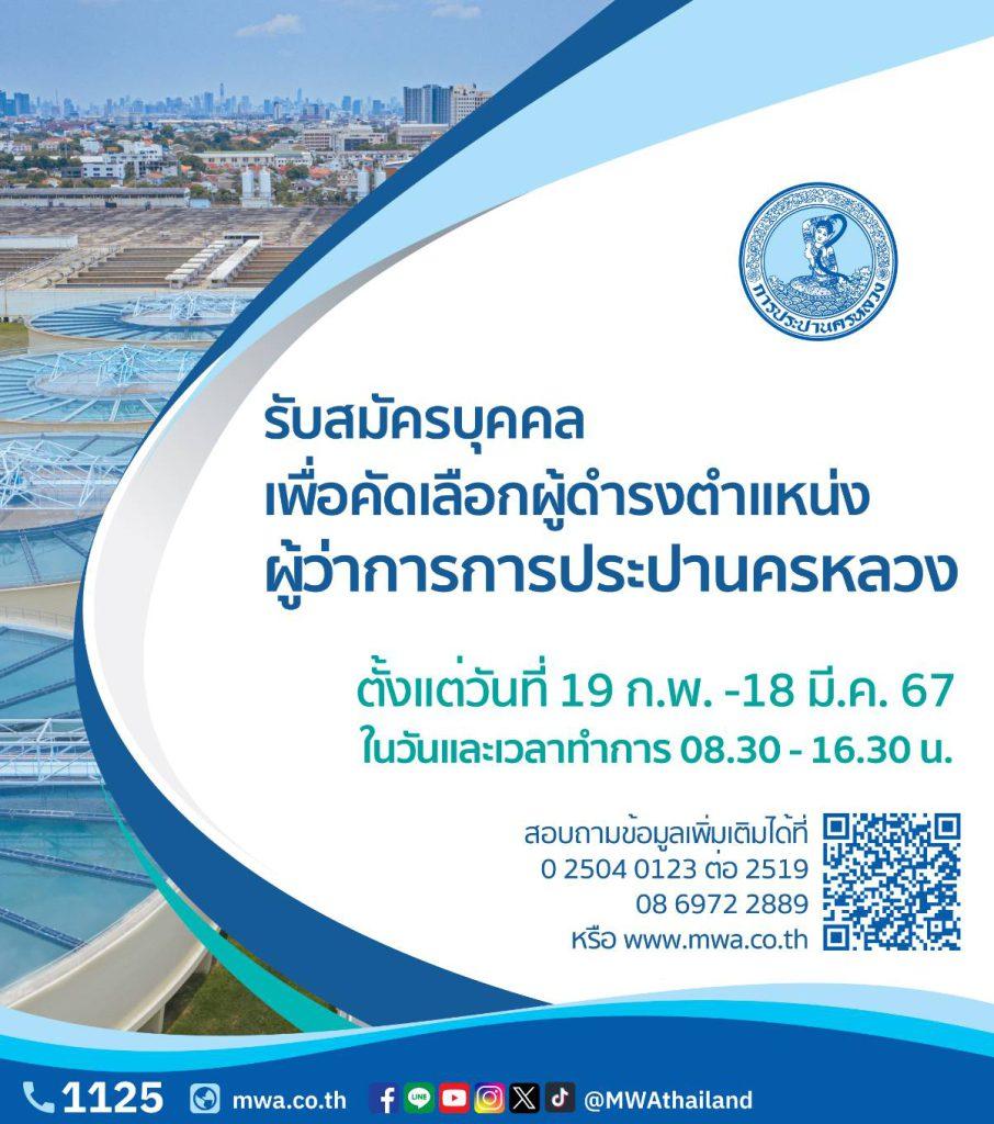 กปน. ประกาศสรรหา ผู้ว่าการฯ คนใหม่ รับสมัครระหว่างวันที่ 19 ก.พ.-18 มี.ค. 67