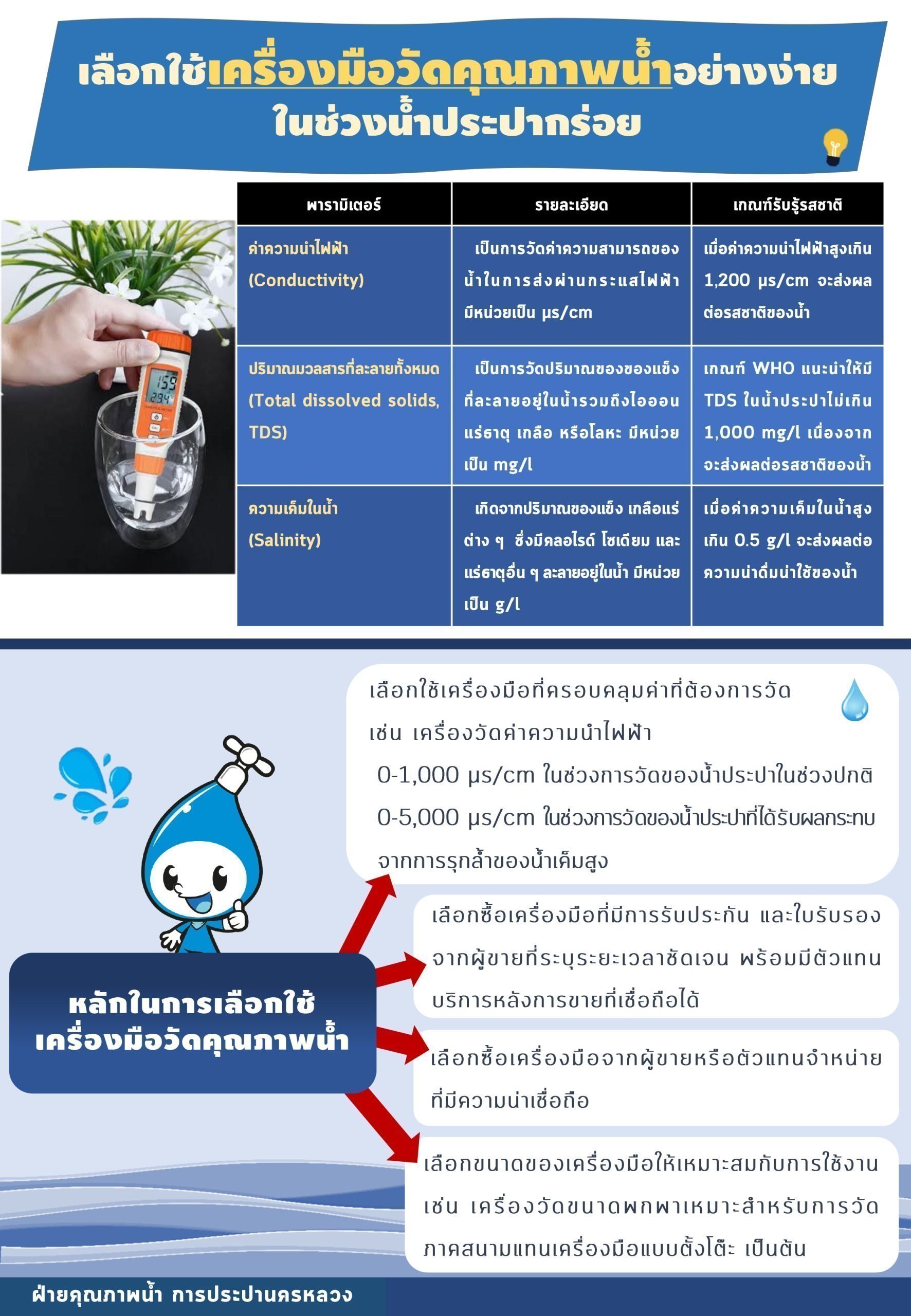 : เลือกใช้เครื่องมือวัดคุณภาพน้ำอย่างง่ายในช่วงน้ำประปากร่อย