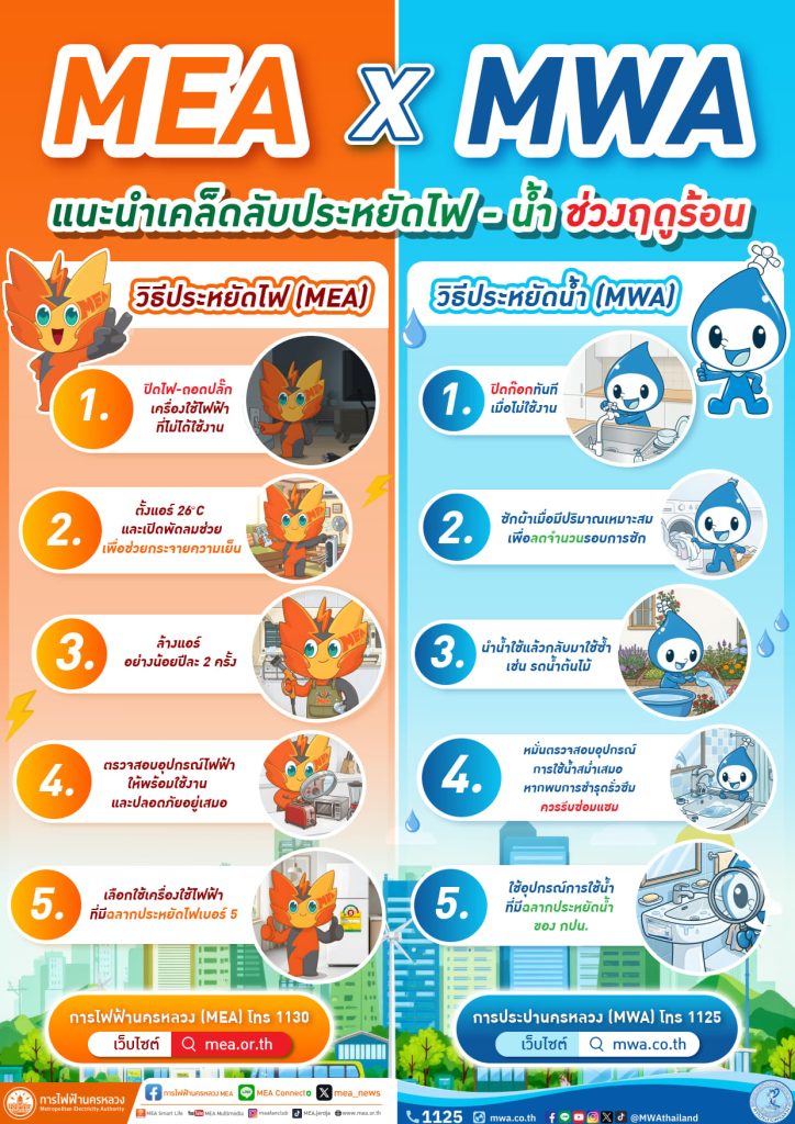 MEA x MWA แนะเคล็ดลับประหยัดไฟ – น้ำ ฤดูร้อน พร้อมรับมือตามนโยบายภาครัฐ