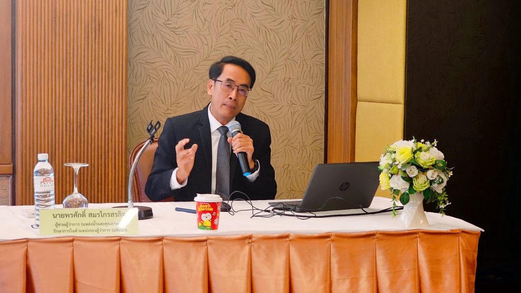 กปน. ร่วมบรรยาย หัวข้อ “การกำจัดเหล็กและแมงกานีส” ในโครงการประชุมเชิงปฏิบัติการพัฒนาศักยภาพผู้รับผิดชอบงานพัฒนาคุณภาพน้ำผู้บริโภค (Traning to the Trainer) ของกรมอนามัย